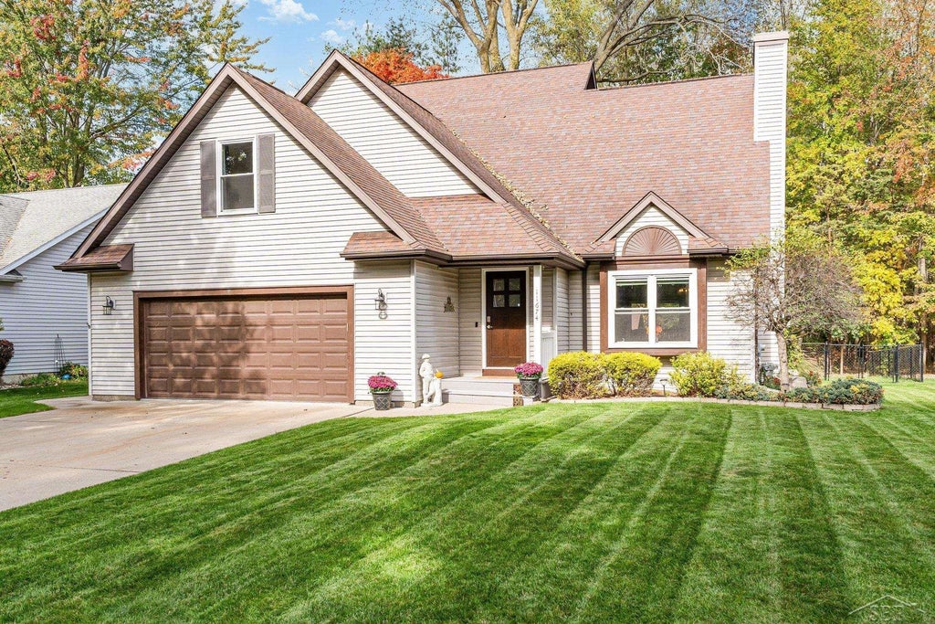 This beautifully updated 4-bedroom home blends modern style with everyday ease in one of Freeland's most desirable neighborhoods. Vaulted ceilings and hardwood floors create a welcoming atmosphere, anchored by a striking stone-wall gas fireplace. The spacious family room flows seamlessly into the dining area, creating a warm, open-concept layout that's perfect for everyday living and easy entertaining. The kitchen is a true standout -- featuring solid wood cabinetry, granite countertops, new backsplash tile, updated appliances, and thoughtful finishes. The first-floor primary suite offers a peaceful retreat, complete with a fully remodeled bath showcasing sleek custom tile and new vanity. Enjoy first floor laundry, and stylish shiplap walls in the main floor half bath and hallway. Downstairs, the partially finished basement expands your possibilities with a cozy family room, dedicated office, and workout space. And outside? A lush, tree-lined backyard awaits, with patio pavers, a covered hot tub area, and firepit-perfect for relaxing evenings or weekend gatherings. Recent upgrades include a newer furnace, water heater, and plush carpet in the great room, adding comfort and value throughout. This home checks all the boxes: stylish, spacious, and ready for you. Schedule your private tour today!
